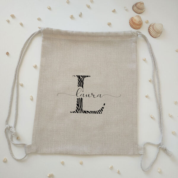 Mochila tipo lino «Inicial animal print + nombre» personalizado