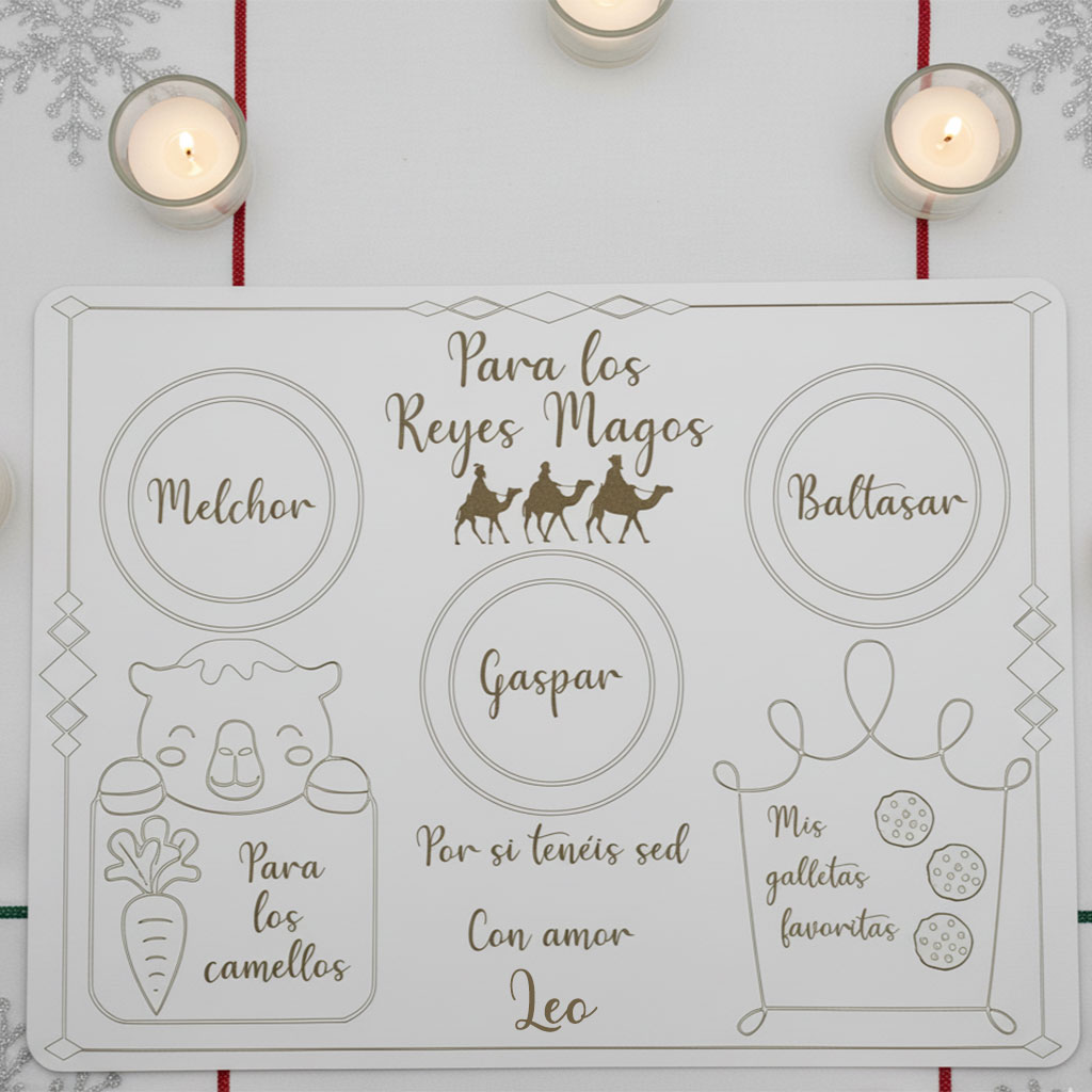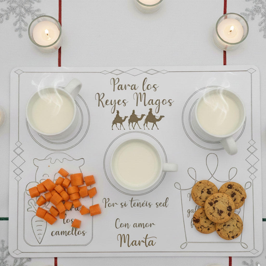 En ella podrás colocar leche, galletas para Sus Majestades y zanahorias para los camellos, creando un ritual lleno de ilusión que encantará a los más pequeños de la casa.