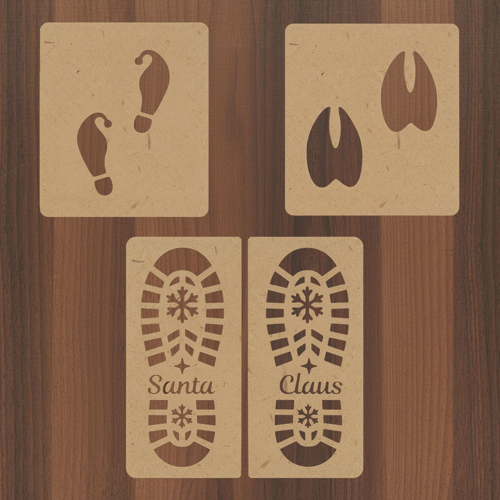 Convierte tu hogar en un escenario lleno de magia con este pack de 3 plantillas de huellas navideñas, perfecto para crear una experiencia inolvidable para los peques. Incluye las huellas de Papá Noel, un elfo y un reno, todas recortadas en MDF de 3 mm para que puedas usarlas como plantilla.
