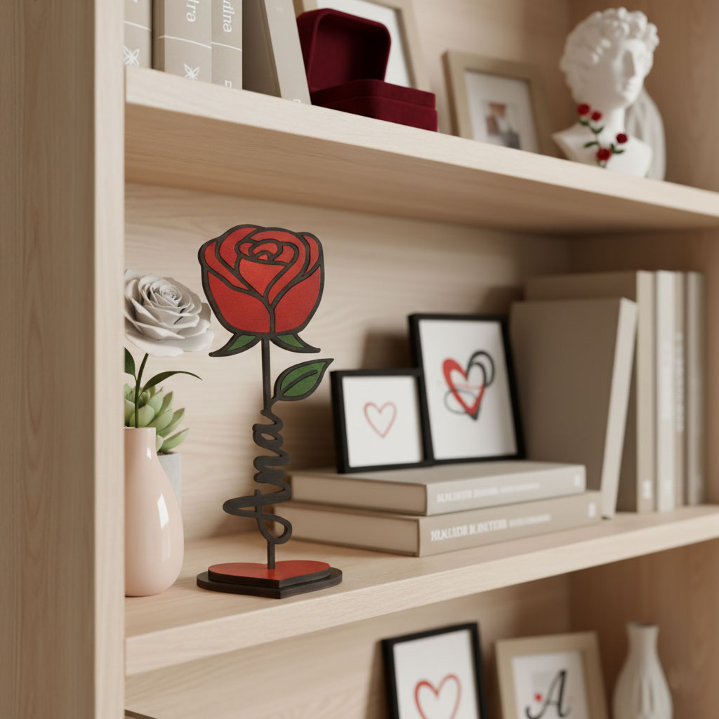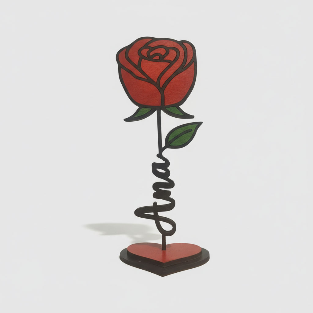 Un detalle romántico y original que no se marchita nunca. Esta rosa decorativa de MDF sublimado está diseñada de forma única: el nombre personalizado forma parte del propio tallo, uniendo la parte inicial y final del mismo, creando un efecto visual elegante y muy especial.